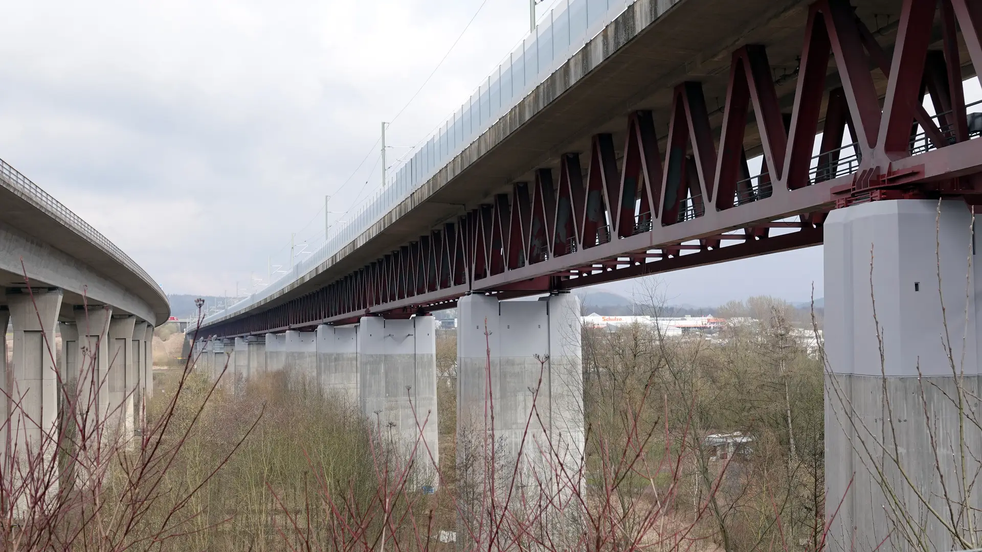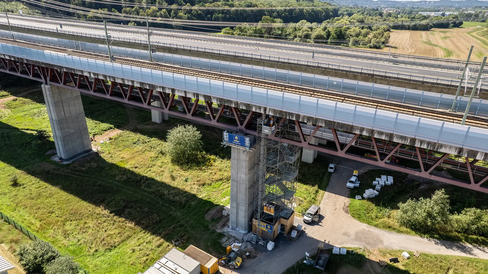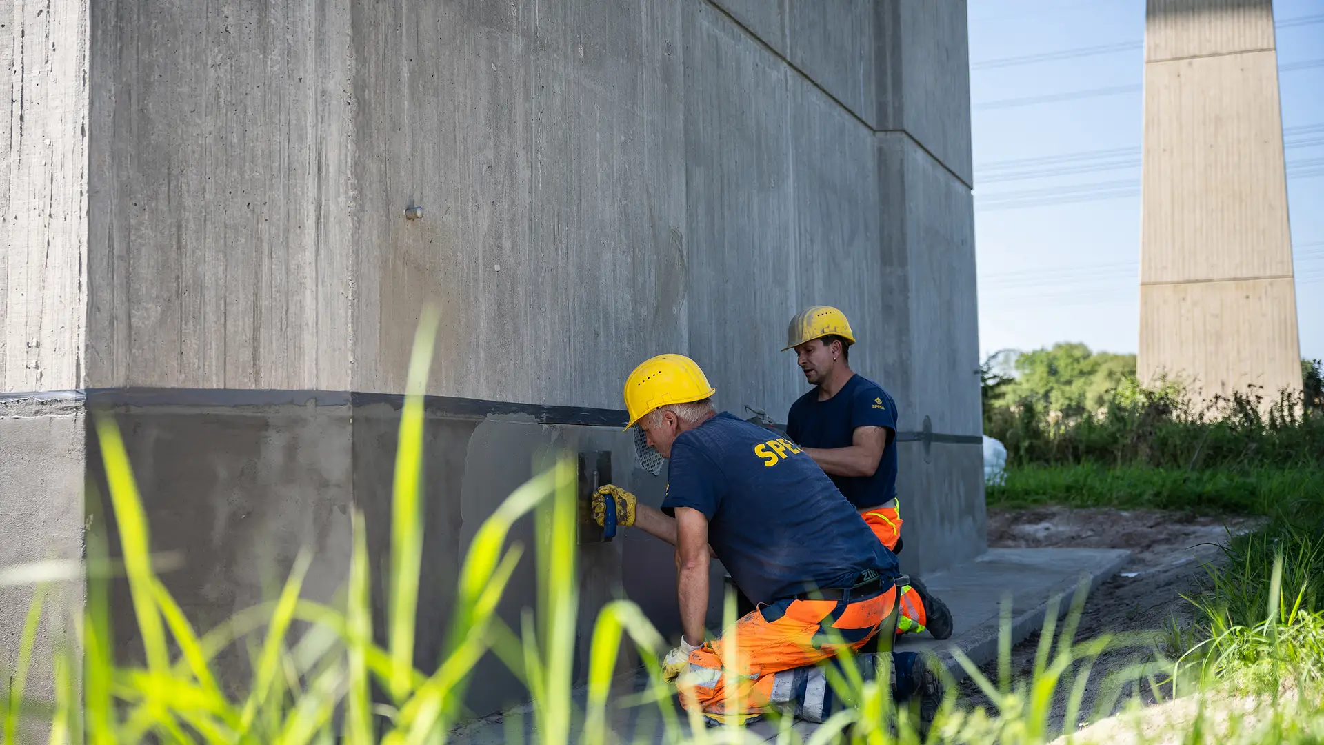 Roedental, Germany – It is more than 20 years old, has a total of 14 pier caps and bases, and is made up of a 868 m steel composite structure: the Itztal bridge railway overpass. The railway bridge with a height of roughly 30 m is part of the high-speed railway line through the Thuringian Forest and runs between the towns of Roedental and Doerfles-Esbach in Upper Franconia. The problem? Fractures in the pier caps caused by incipient chemical attack reactions in the concrete, which leads to efflorescence and fractures in the concrete support structures of the piers as a result of moisture. To safeguard the stability of the Itztal bridge on the long term and prevent the ingress of water, SPESA Spezialbau und Sanierung GmbH was tasked along with the steel construction experts from SCHACHTBAU NORDHAUSEN GmbH to carry out extensive concrete rehabilitation and steel reinforcement measures. After a construction period of roughly one year, the order was successfully concluded in June 2024, a subcontracted service on behalf of DB Bahnbau Gruppe GmbH as main contractor for DB InfraGO AG.